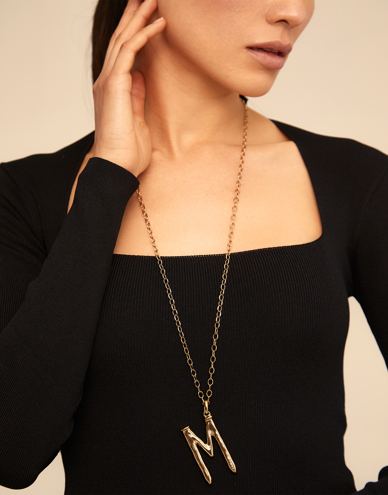 18K gold-plated charm inspired by the iconic UNOde50 letter-shaped nail. All the letters of the alphabet, capital letters, converted into a unisex large charm: 2.7 cm wide and 5.5 cm long. The letter can be combined with chains with different sizes and volumes. 100% handmade in Spain by UNOde50.