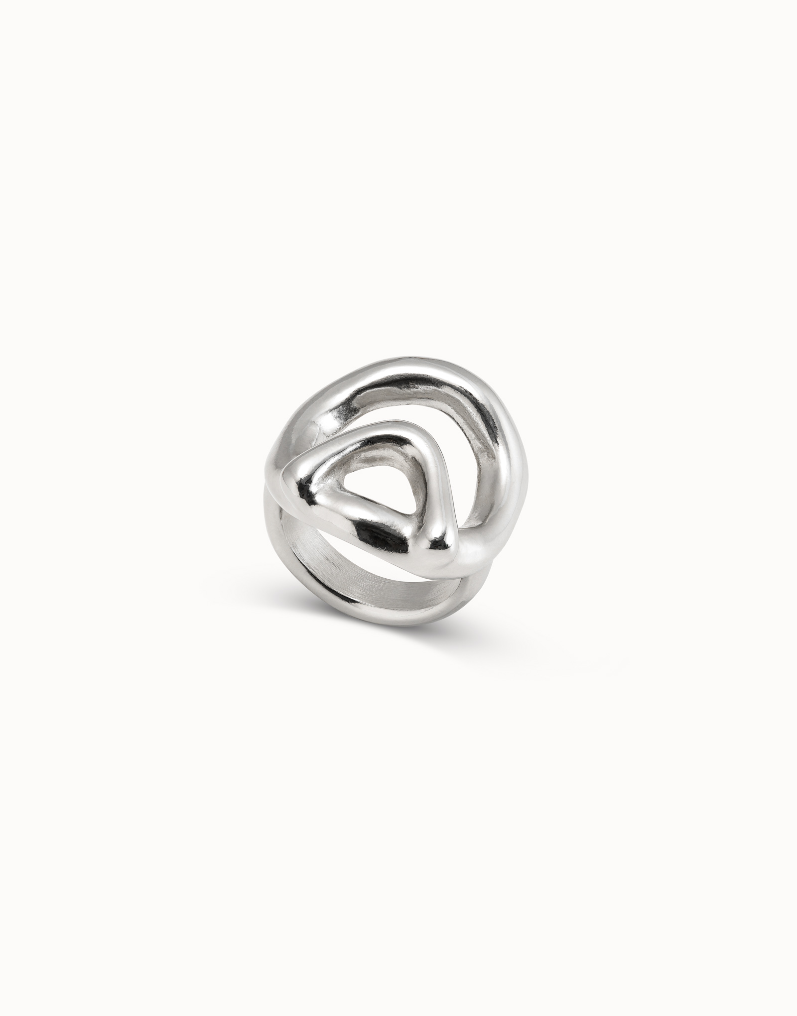 Portez un bijou unique en forme de maillons superposés en forme de cercle et triangle, avec un design absolument organique et caractéristique de UNOde50. Cette bague, métallique et plaquée argent, a été réalisée 100% artisanalement en Espagne.