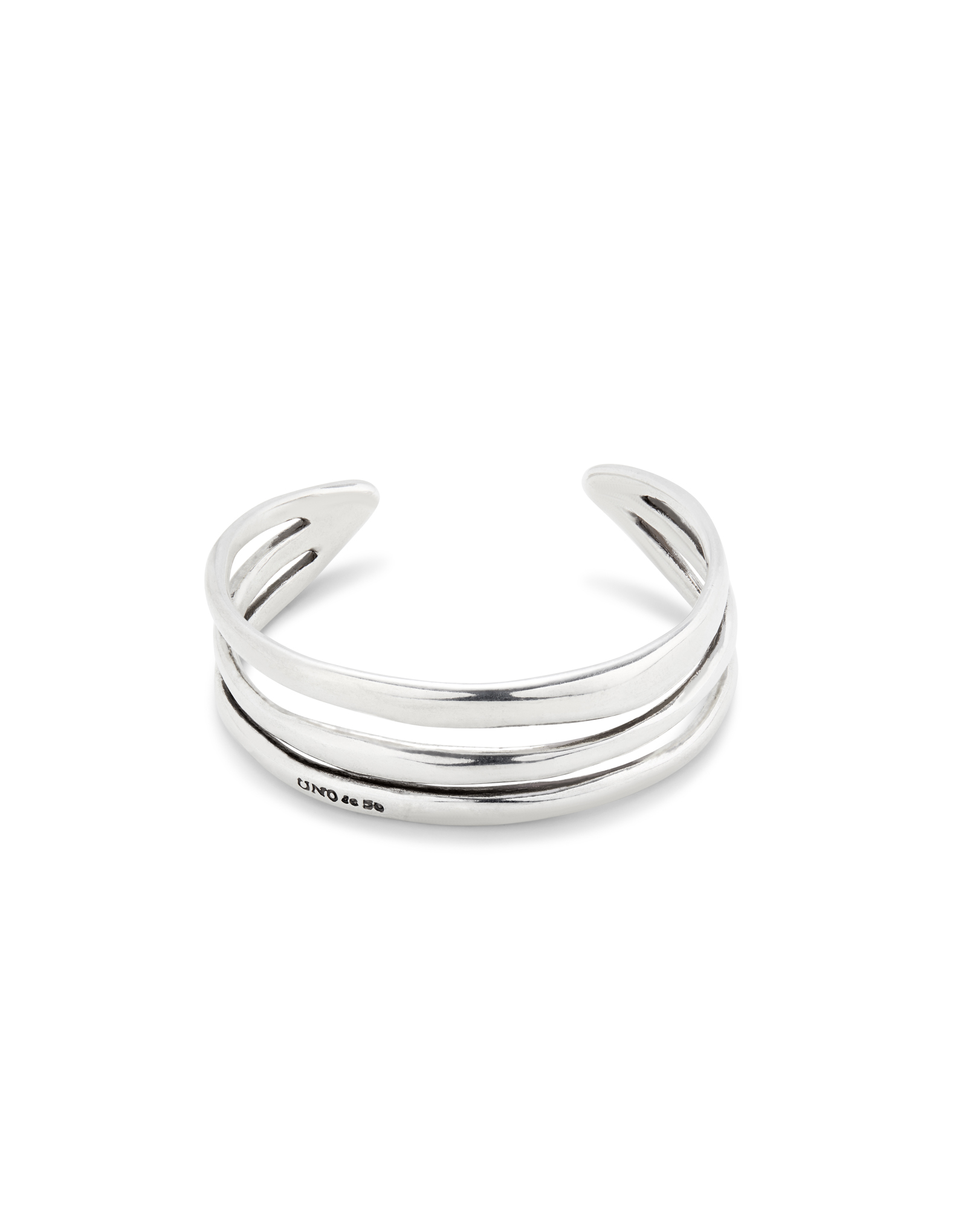 Triple rigid sterling silver-plated bracelet. Jewel 100% handcrafted in Spain, achieving a unique design finish. Vital collection, inspired by the power of one's own merit. A collection of organic metal jewelry, curvatures and irregularities, combined with faceted crystals, bring brightness and energy. Essential and timeless. Pieces for vital, lively, unique souls.