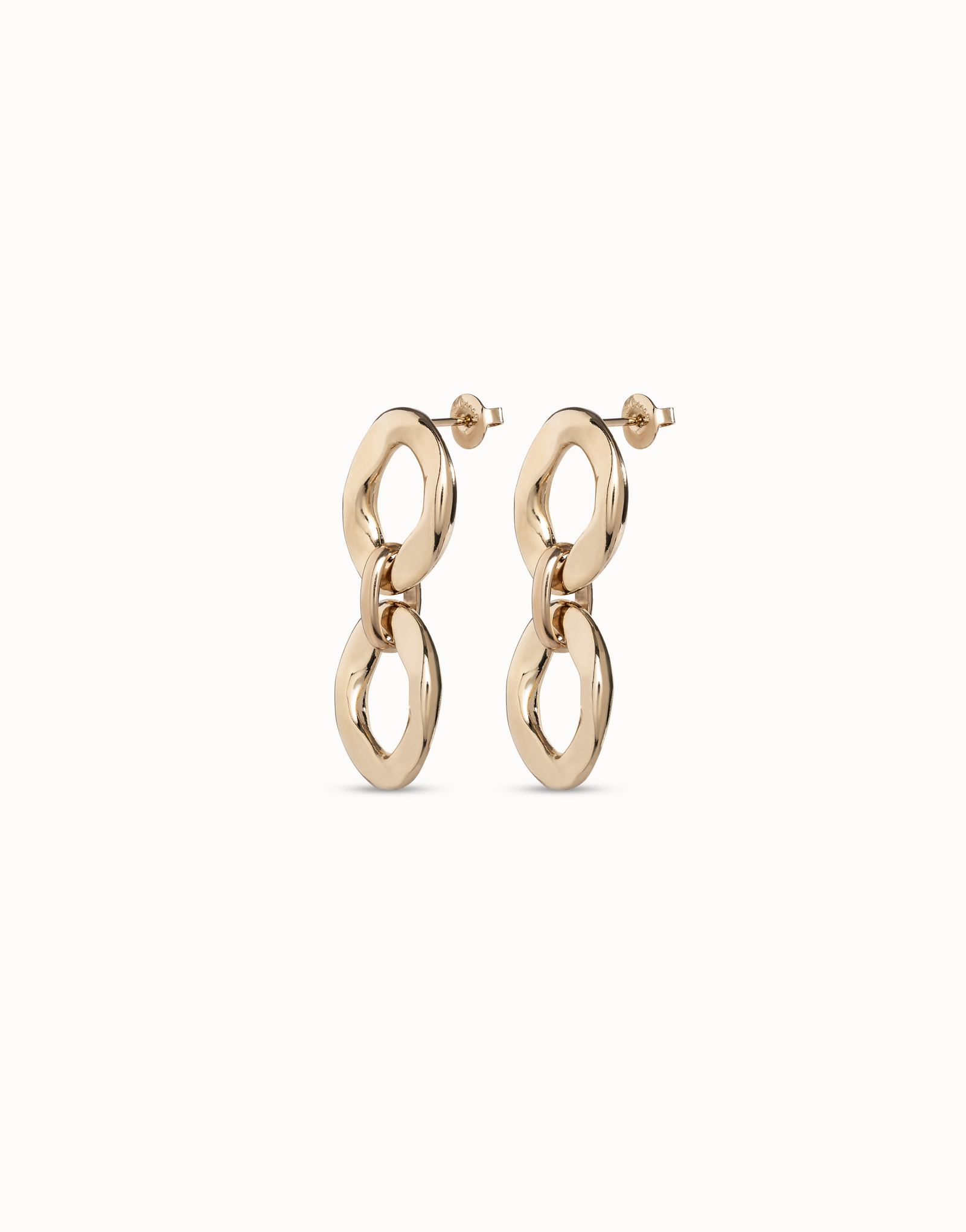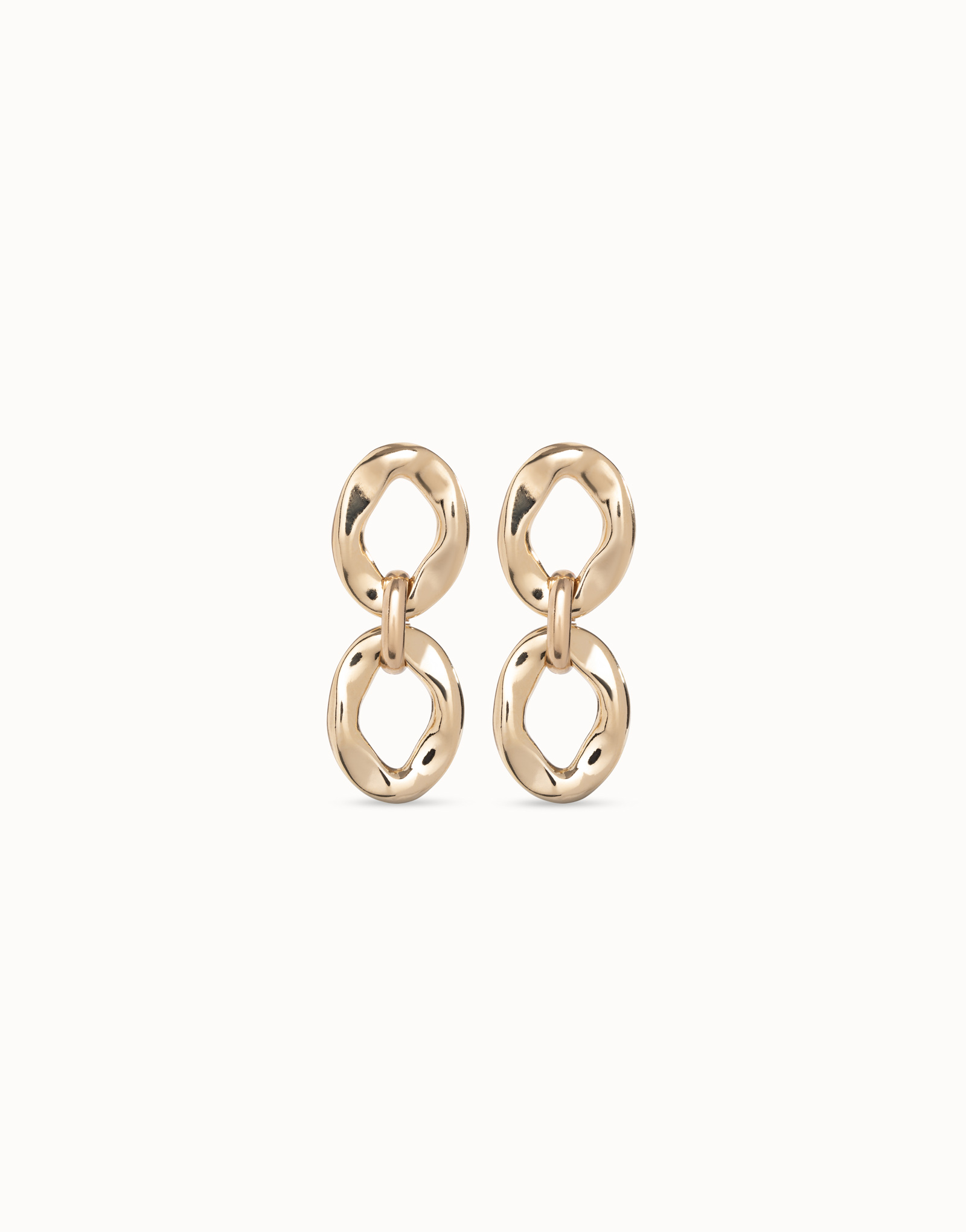 18K gold-plated earrings with a design of two links of the same size, joined together by a small ring and nut clasp with UNOde50 logo engraved.