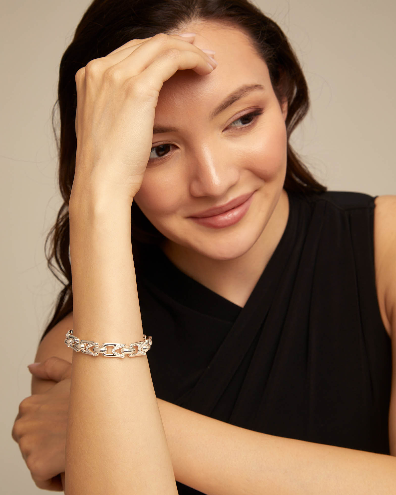 Sterling silver-plated bracelet with small links with small topaz. It has a carabiner clasp and an extensible chain that allows to fit the bracelet to the desired size. Jewel 100% handcrafted in Spain, achieving a unique design finish.