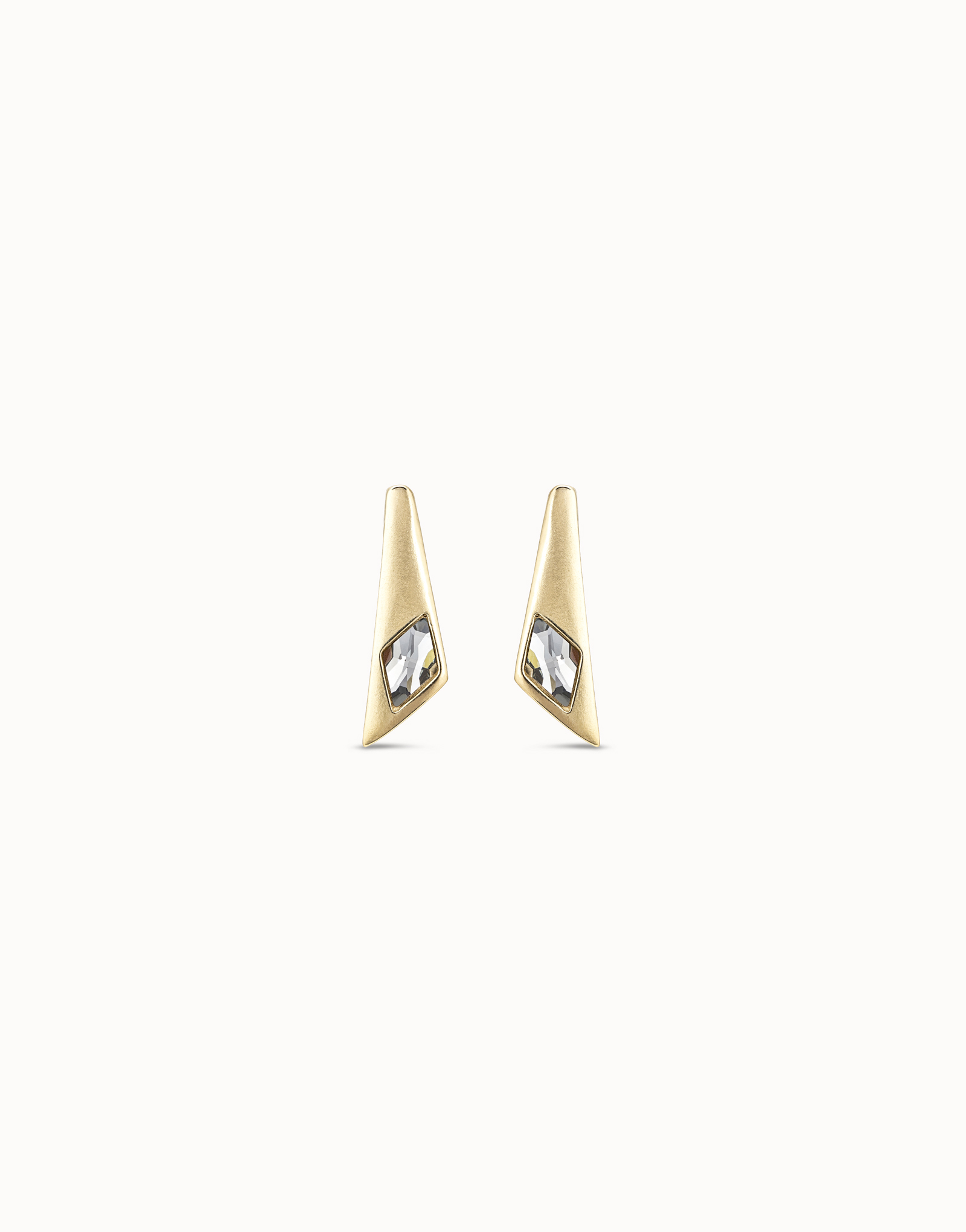 The authentic skill of Dazzle contained in this jewel can now be yours. Handmade gold-plated metal folded-shaped earrings with a gray faceted crystal. Get this unique jewel made in Spain.
