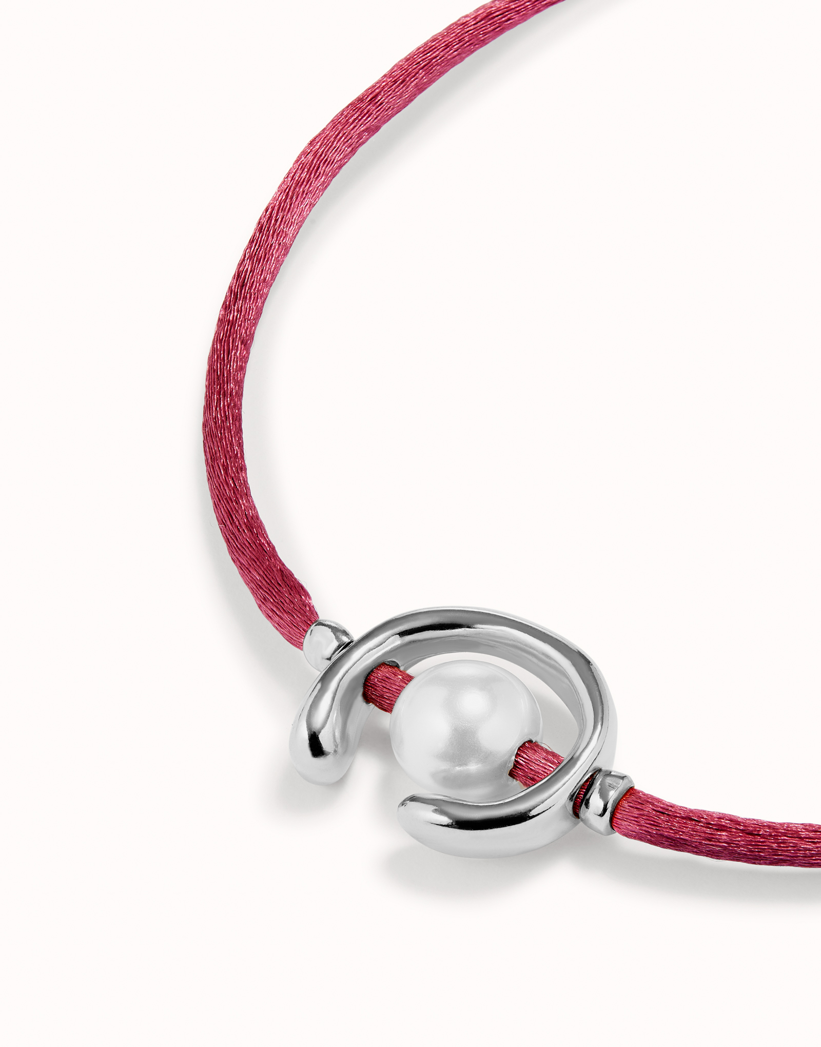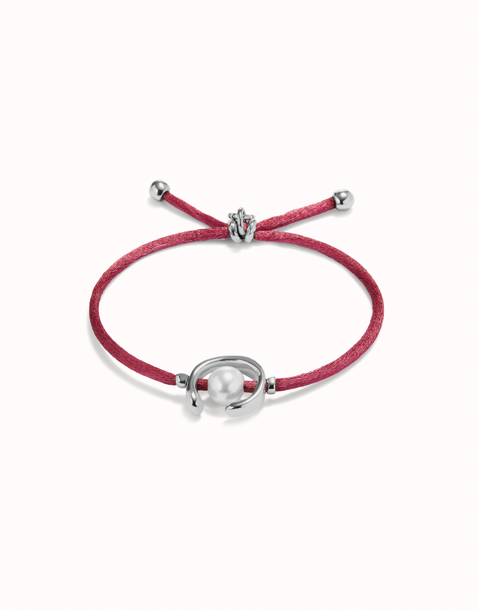Pulsera de hilo malva con perla shell fornitura bañada en plata de ley.