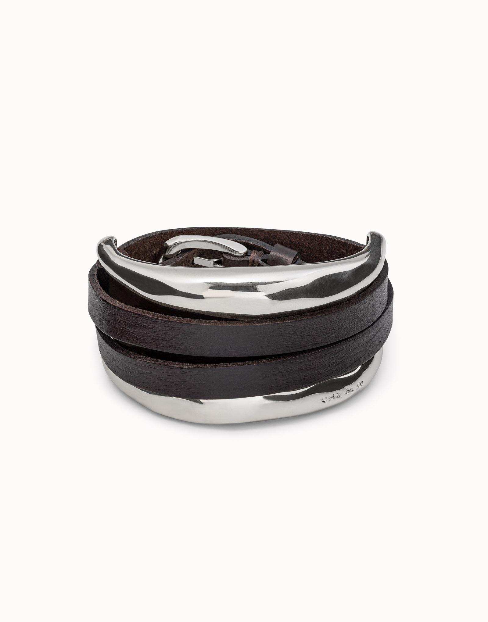 Le bracelet Hold me Black est inspiré de l’emblématique bracelet Ibiza, symbole de UNOde50, dans l’esprit jeune des soirées d’Ibiza. Son design large présente une bande de cuir marron à deux rangs, terminée par un fermoir à boucle. Ce bijou a été élaboré en Espagne de façon entièrement artisanale, à partir d’un alliage de métaux recouverts d’un plaquage en argent. Adoptez cette nouvelle version du grand classique de UNOde50, qui deviendra vite le bijou indispensable de votre collection.
